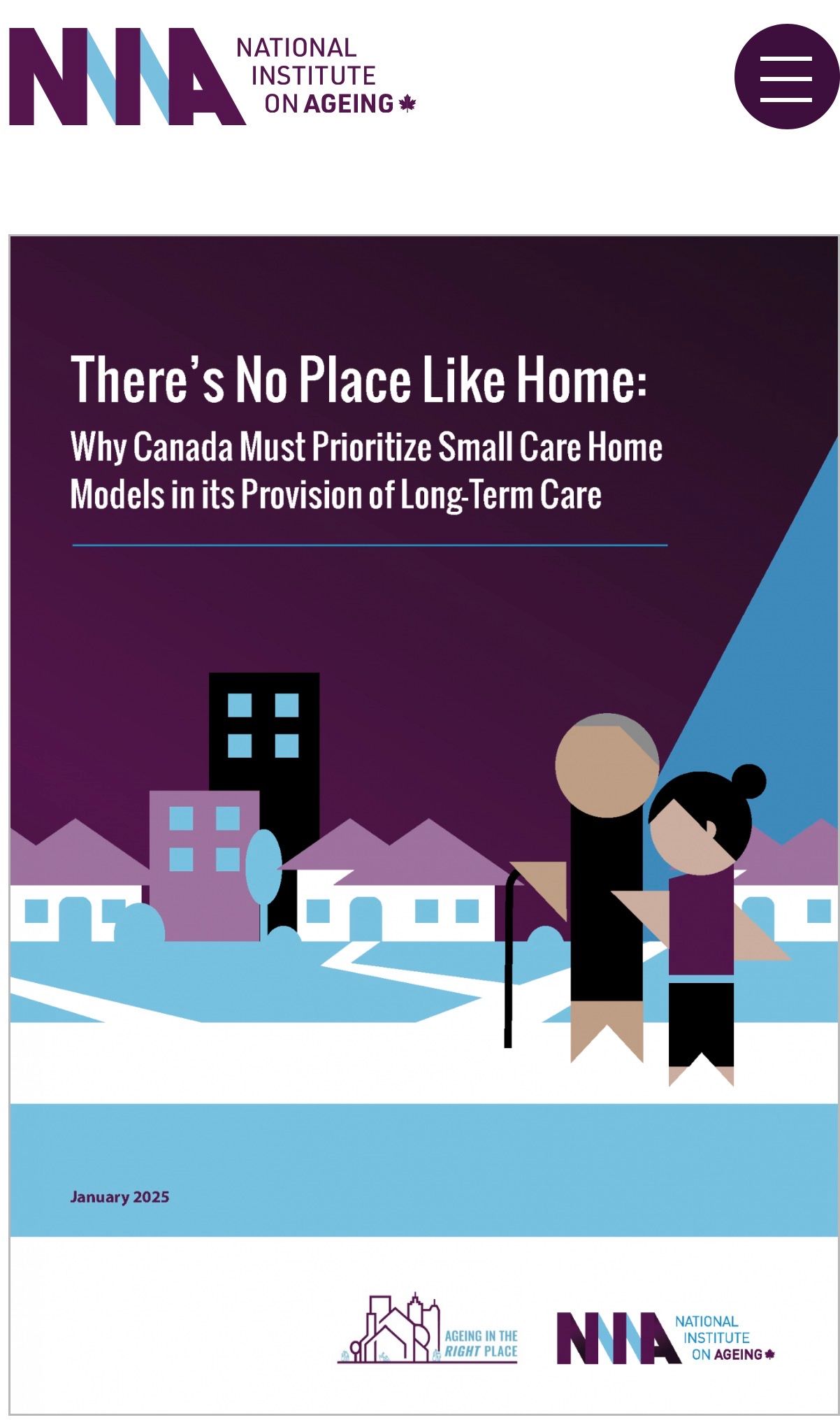 The National Institute on Ageing (NIA) has released its latest report, There’s No Place Like Home, urging Canada to prioritize small care home models in the future of long-term care (LTC). The report calls for a major shift away from large institutional facilities toward smaller, home-like environments that better reflect public preferences, enhance quality of life and care outcomes for residents, and improve working conditions for staff.